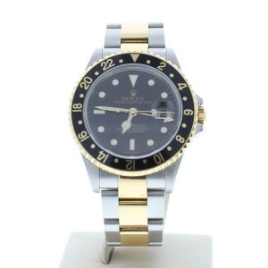 Rolex 16713 GMT Master II 40mm Steel & Gold Watch Black Dial & Bezel
