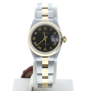 Rolex Model 69173 Steel & Gold Datejust Black Pyramid Roman Dial & Fluted Bezel