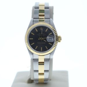 Rolex Model 69173 26mm Steel & Gold Datejust Black Stick Dial & Fluted Bezel