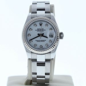 Rolex 179174 Ladys Datejust Oyster Band Custom White Diamond Dial Fluted Bezel