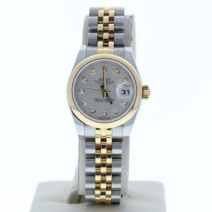 Rolex 179163 Ladys Datejust Watch Factory Silver Diamond Dial & Smooth Bezel