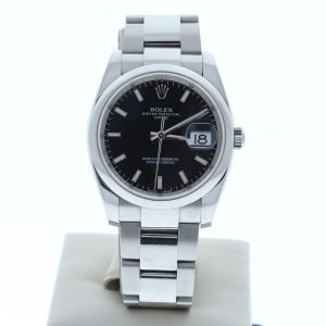 Rolex 115234 Oyster Perpetual Date 34mm Watch Black Index Dial & Fluted Bezel