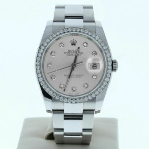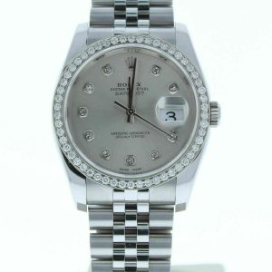 Rolex 36mm Datejust 116200 Custom Silver Diamond Dial & Custom 1Ct Diamond Bezel