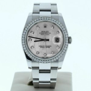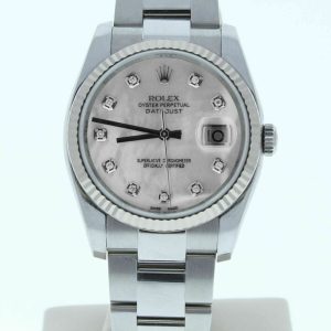 Rolex Datejust 116234 Oyster Band Custom MOP Diamond Dial & 18k Fluted Bezel