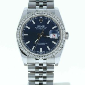 Rolex Datejust 116200 36mm Watch Blue Index Dial & Custom 1CT Diamond Bezel