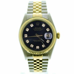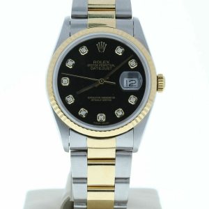 Rolex Model 16013 36mm Datejust Steel & 18k Gold Watch Custom Black Diamond Dial