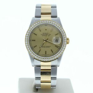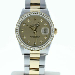 ROLEX 16233 36MM DATEJUST FACTORY CHAMPAGNE DIAMOND DIAL & CUSTOM DIAMOND BEZEL