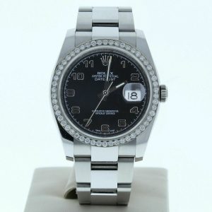 Rolex Datejust 116200 36mm Watch Black Arabic Dial & Custom 1Ct Diamond Bezel