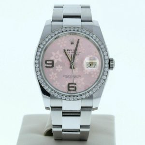 Rolex Datejust 116200 36mm Watch Pink Floral Dial & Custom 1CT Diamond Bezel