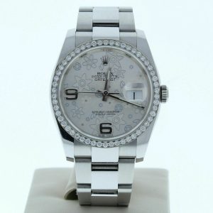 Rolex Datejust 116200 36mm Watch Silver Floral Dial & Custom 1CT Diamond Bezel