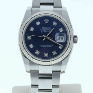 Rolex Datejust 116234 Oyster Band Custom Blue Diamond Dial & 18K Gold Bezel