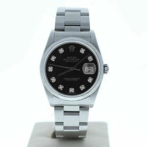 Rolex Model 16014 36mm Datejust Stainless Steel Watch Custom Black Diamond Dial
