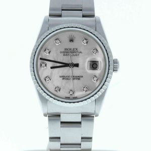Rolex 36mm Datejust 16233 Custom Mother Of Pearl Diamond Dial & Fluted Bezel