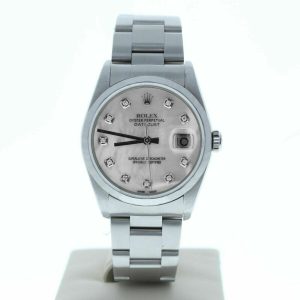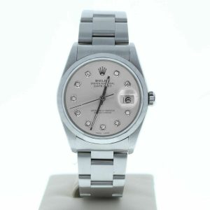 Rolex Model 16200 Mens Datejust Watch Custom Silver Diamond Dial Smooth Bezel