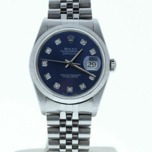 Rolex 16200 Mens Datejust Jubilee Band Custom Blue Diamond Dial Smooth Bezel