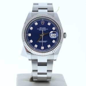 ROLEX 126334 DATEJUST 41 OYSTER BAND WATCH BLUE DIAMOND DIAL FLUTED BEZEL