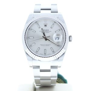 Rolex 126334 Datejust 41mm Watch Silver Index Dial & 18k Fluted Bezel Unused