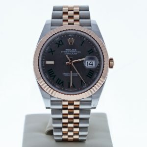 Rolex 126331 41mm Datejust Steel & Rose Gold Watch Slate Roman Dial Fluted Bezel