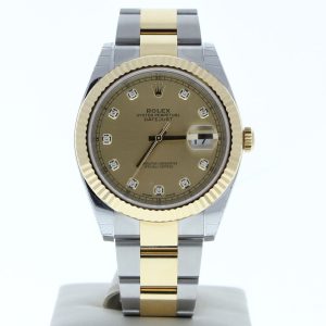 ROLEX 126333 DATEJUST 41 OYSTER BAND CHAMPAGNE DIAMOND DIAL FLUTED BEZEL