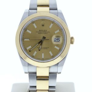 ROLEX MODEL 126303 DATEJUST 41MM WATCH CHAMPAGNE INDEX DIAL & GOLD SMOOTH BEZEL