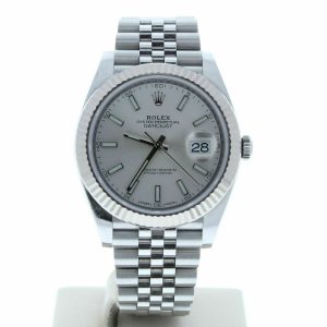 • Rolex 126334 Datejust 41mm Jubilee Band Watch Silver Index Dial & Fluted Bezel