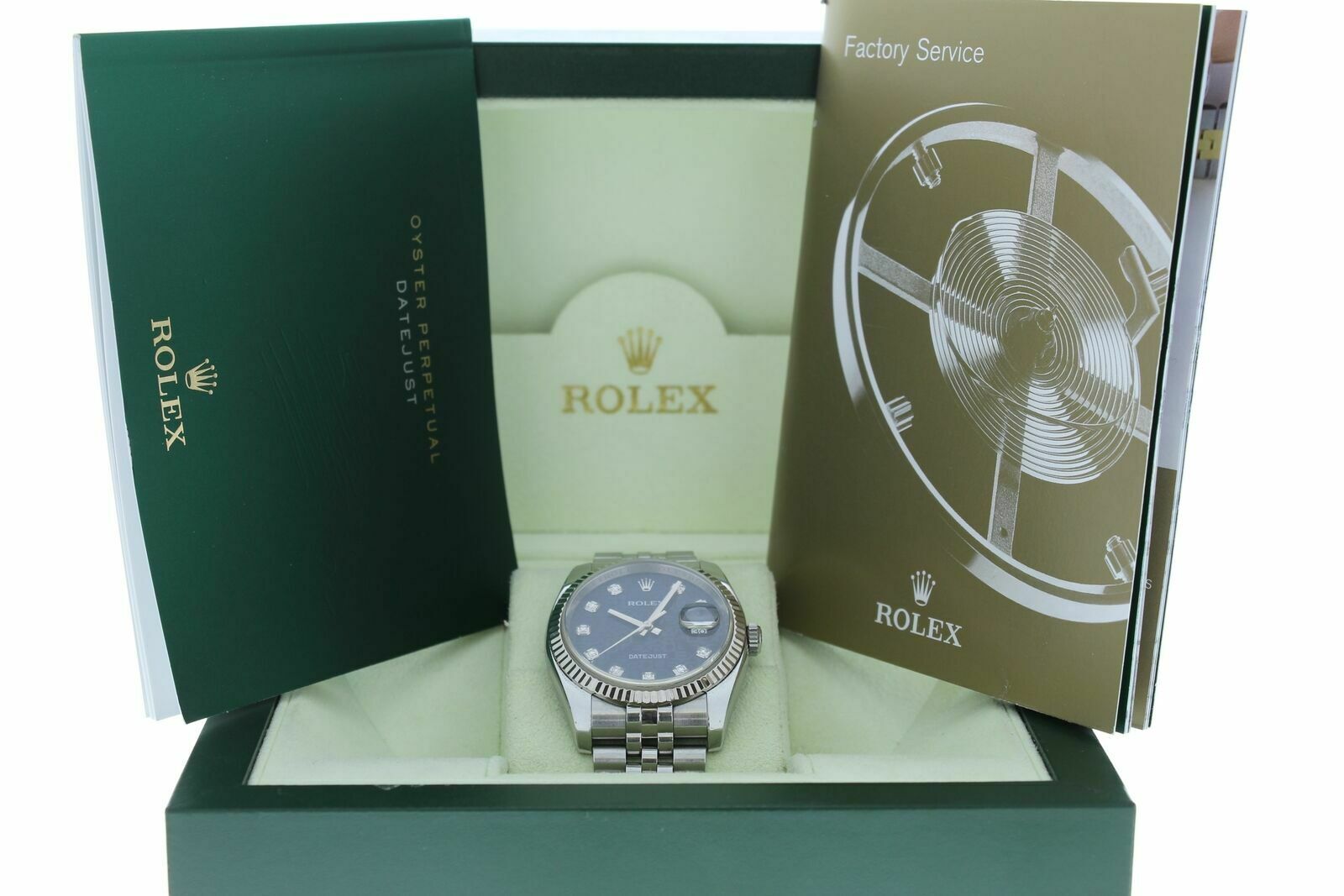 ROLEX 116234 DATEJUST WATCH BLUE ANNIVERSARY DIAMOND DIAL & FLUTED BEZEL