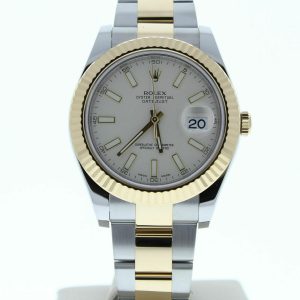 This Rolex 41mm Datejust Unused- Never Worn Before With Full Stickers. This is a Datejust Watch and comes sized for a 7 3/4″ wrist size, If you have a larger wrist please let us know and we will try to accommodate you. The watch case measures at 41mm and comes with a deployment buckle.If you have any questions at all please feel free to contact us . We reply to all emails within 24 hours during business days.