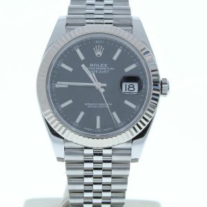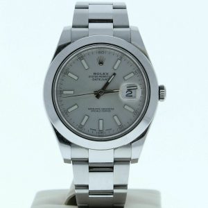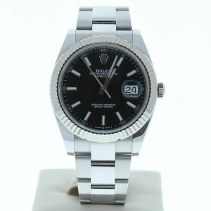 This Rolex Is Unused (Full Stickers) & Comes With Rolex Box, Booklets & Hangtag’s. It has also been tested for accuracy and water pressure. This is a 41mm Datejust Watch and comes sized for a 7 3/4″ wrist size, If you have a larger wrist please let us know and we will try to accommodate you. The watch case measures at 41mm and comes with a deployment buckle.