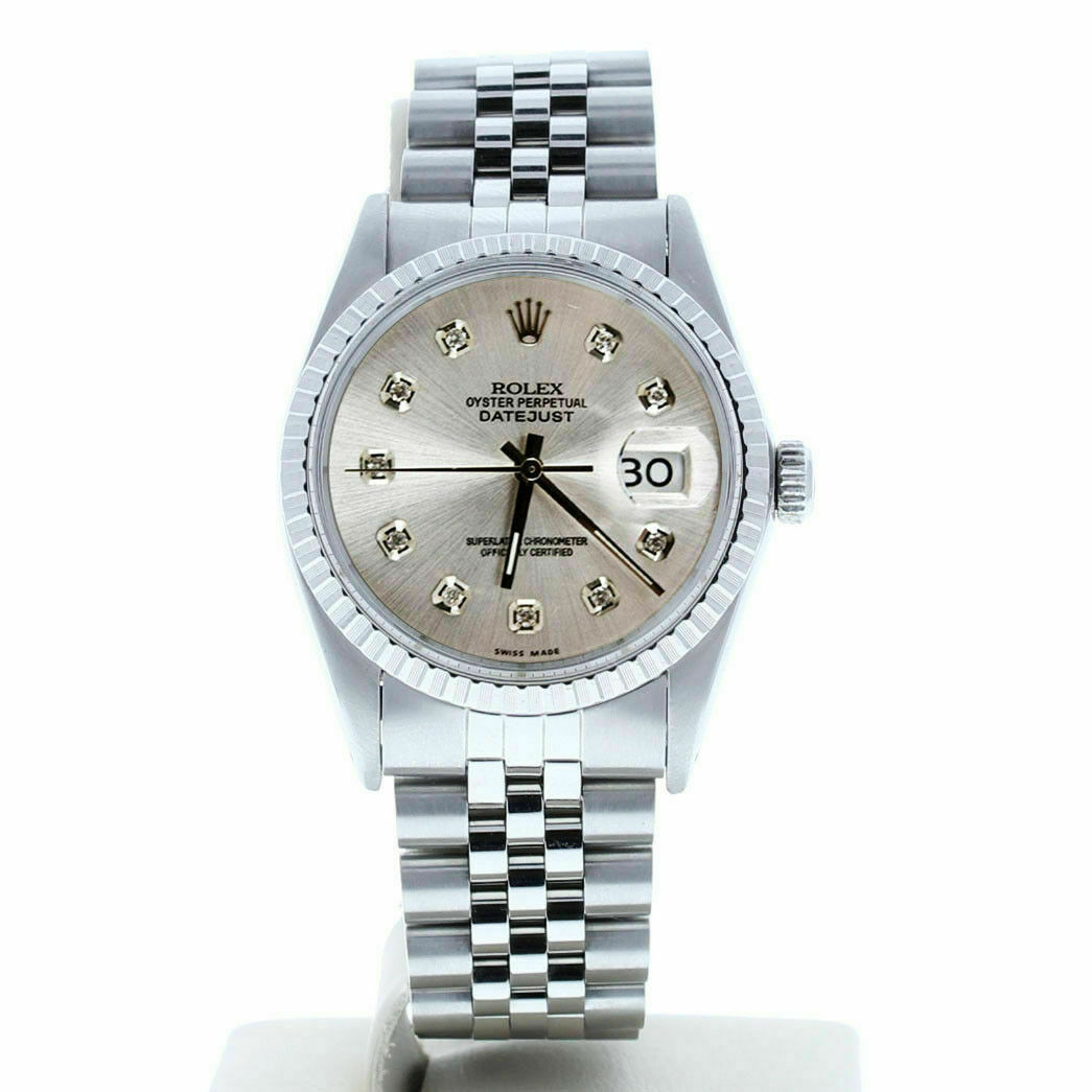 Rolex 16030 36mm Datejust Watch Custom Added Silver Diamond Dial & Engine Bezel