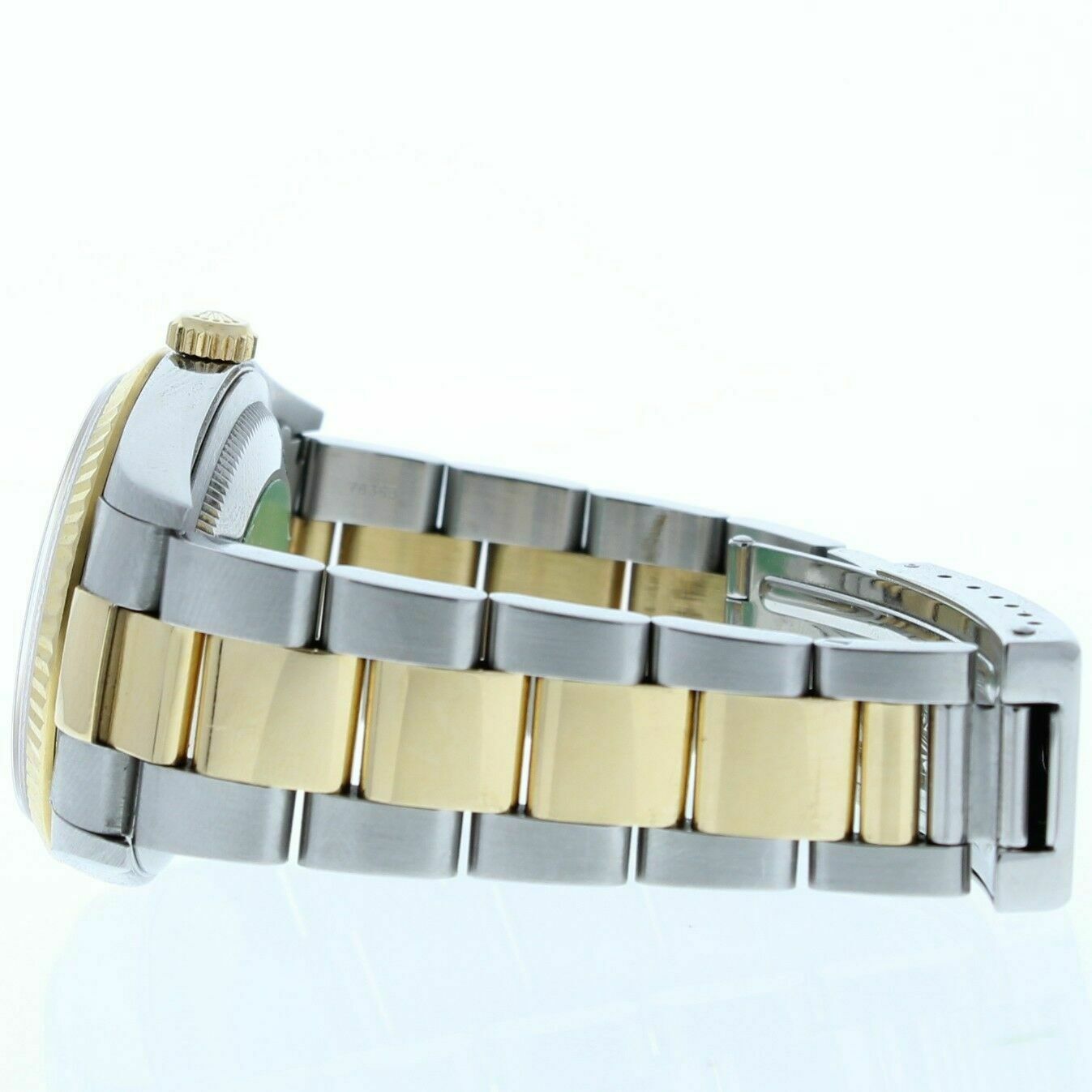 This Rolex has been beautifully restored to look brand new. This watch has been tested for accuracy and water pressure. This is a 90’s era model with a stainless steel and 18k yellow gold oyster band that can be sized up to a 7 3/4″ wrist size, If you have a larger wrist please let us know and we will try to accommodate you. The watch case measures at 36mm and comes with a deployment buckle. If you have any questions at all please feel free to contact us . We reply to all emails within 24 hours during business days.