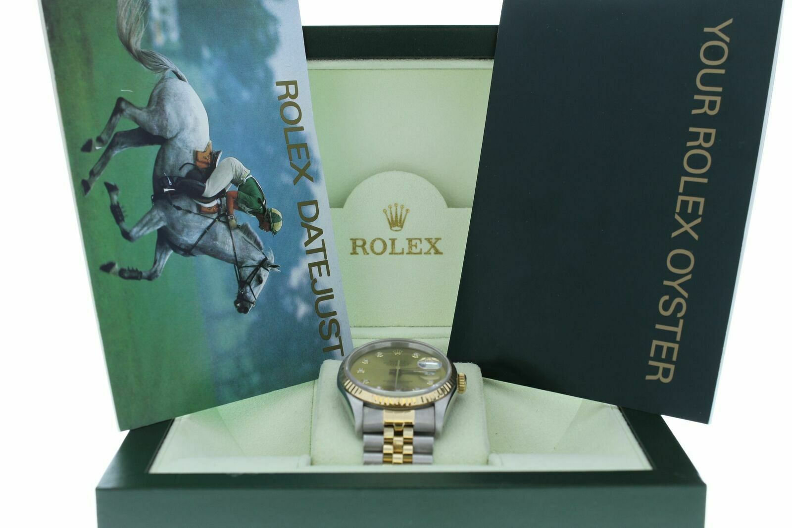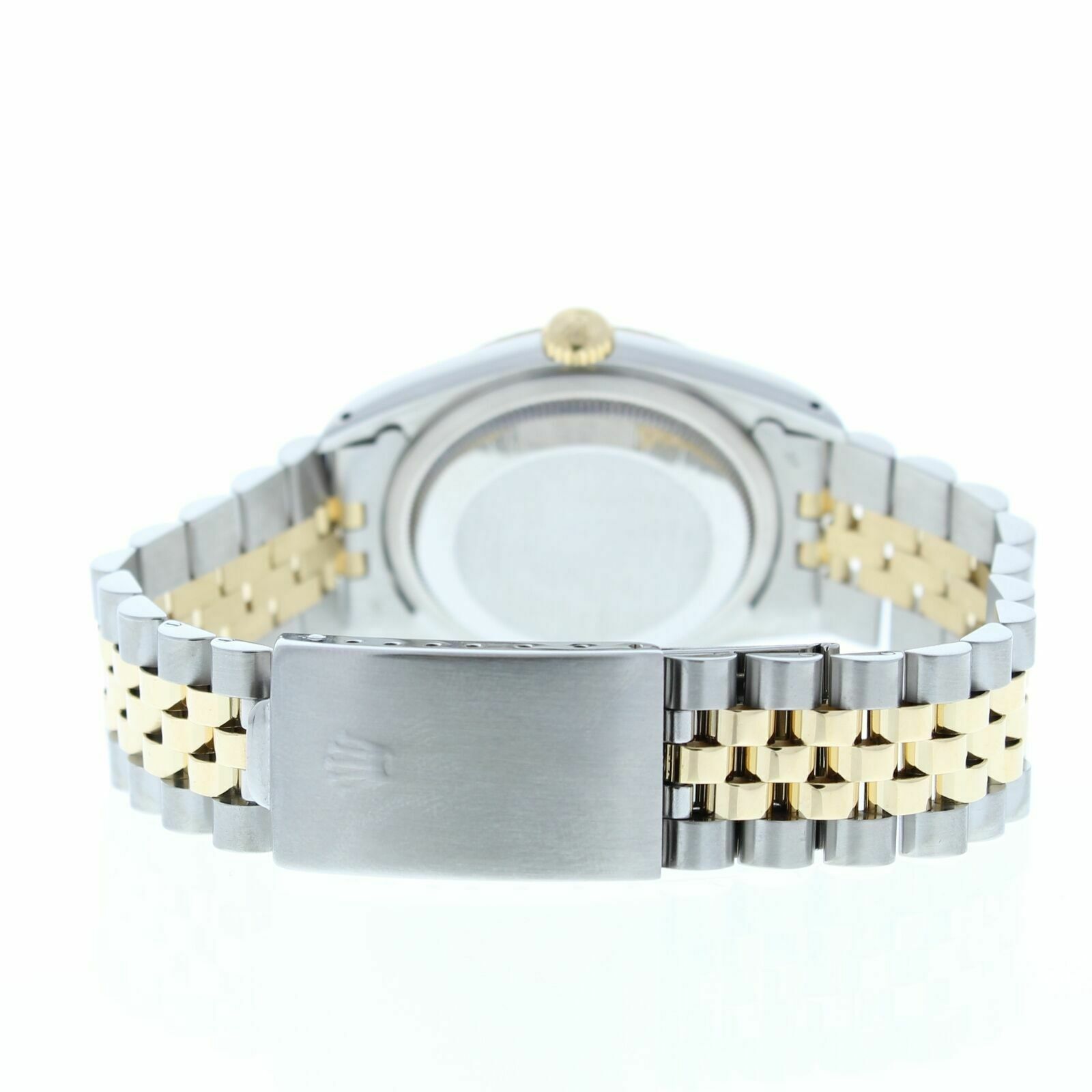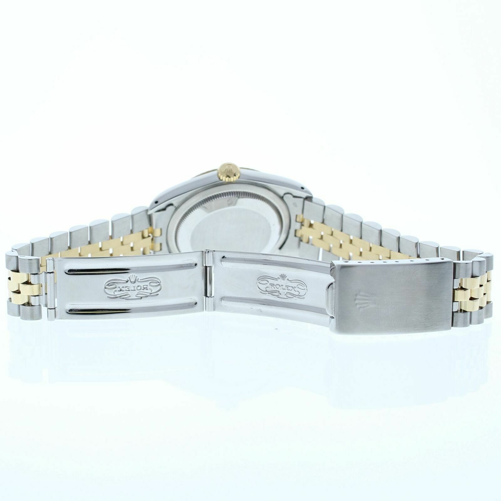 This Rolex has been beautifully restored to look brand new. This watch has been tested for accuracy and water pressure. This is a 90’s era model with a stainless steel and 18k yellow gold jubilee band that can be sized up to a 7″ wrist size, If you have a larger wrist please let us know and we will try to accommodate you. The watch case measures at 36mm and comes with a deployment buckle.
