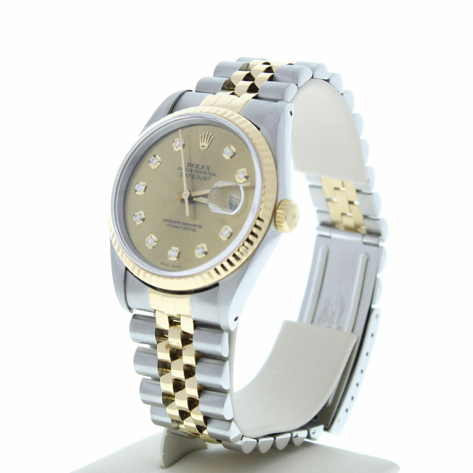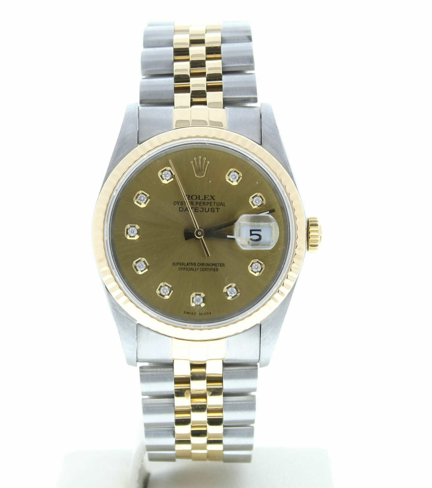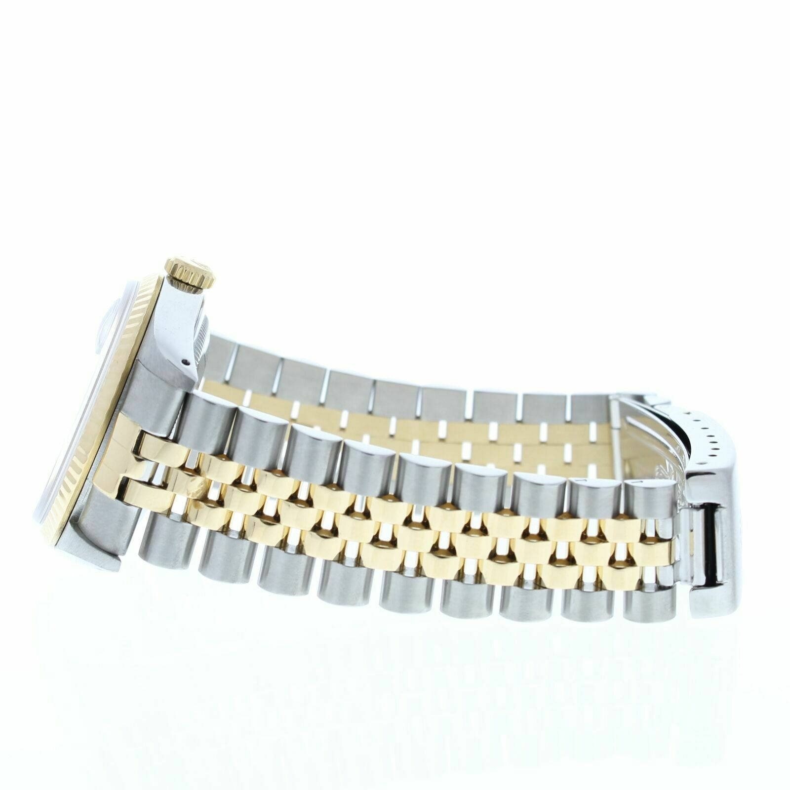 This Rolex has been beautifully restored to look brand new. This watch has been tested for accuracy and water pressure. This is a 90’s era model with a stainless steel and 18k yellow gold jubilee band that can be sized up to a 7″ wrist size, If you have a larger wrist please let us know and we will try to accommodate you. The watch case measures at 36mm and comes with a deployment buckle.