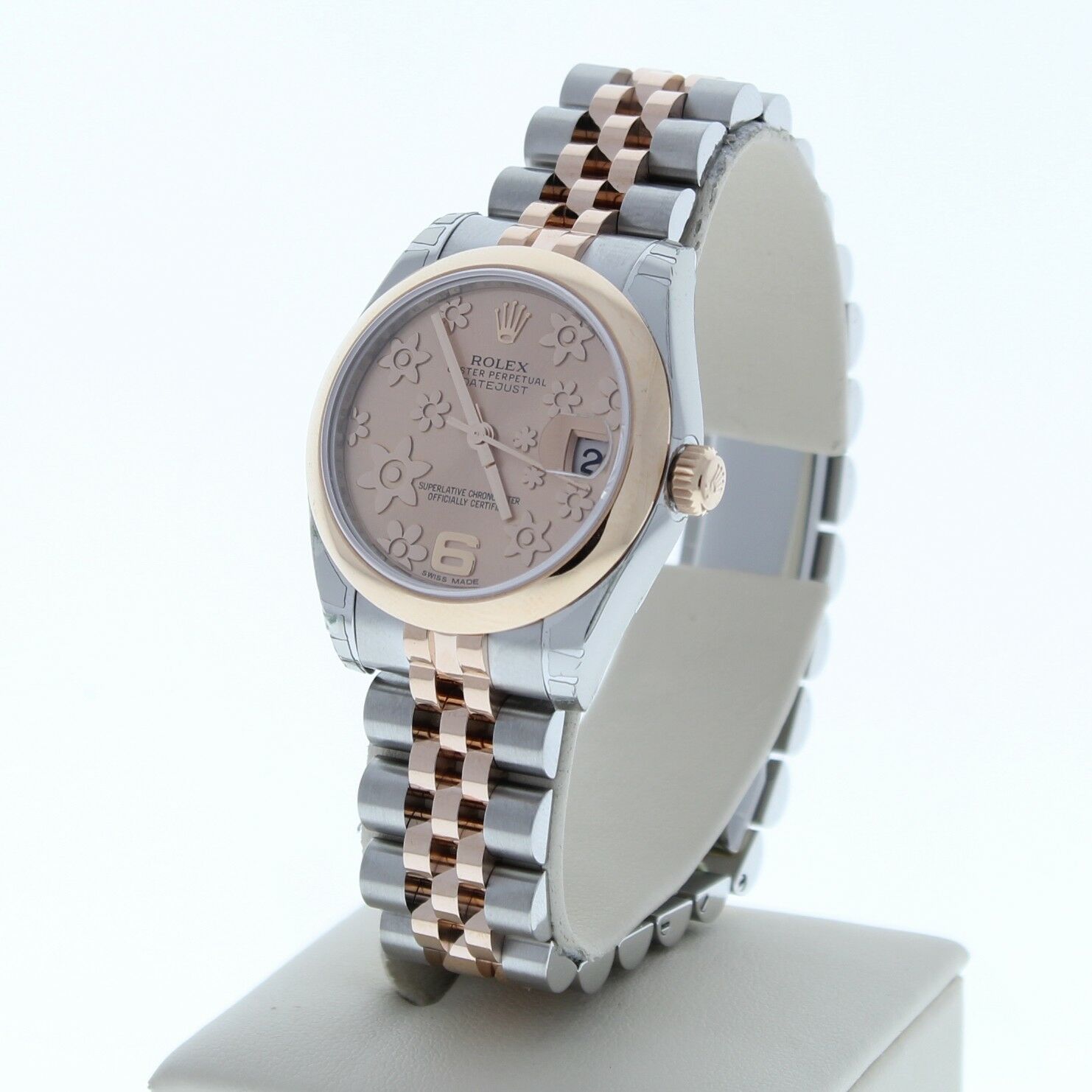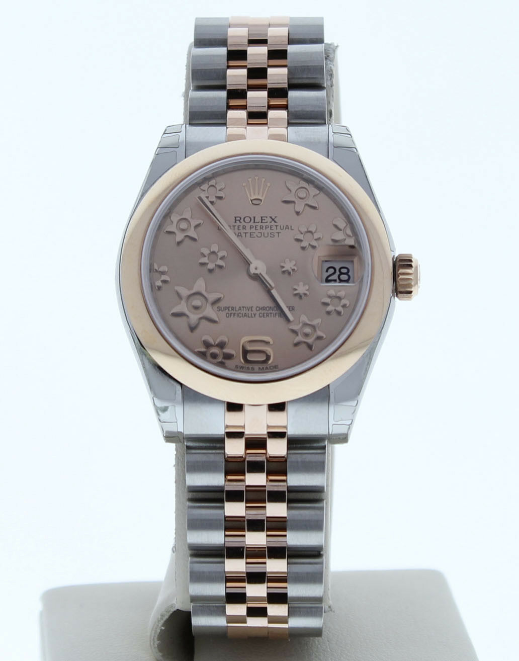 ROLEX 178241 31MM DATEJUST STEEL & 18K ROSE GOLD WATCH PINK FLORAL DIAL