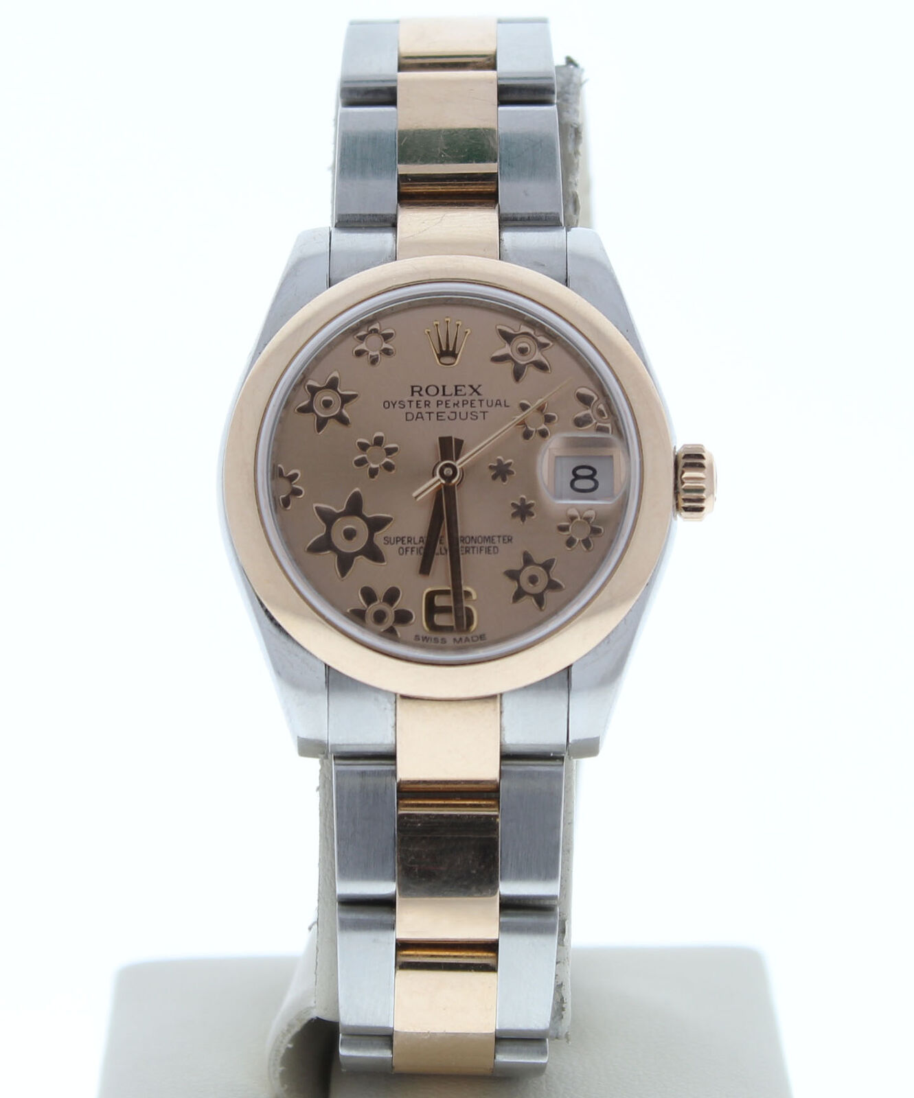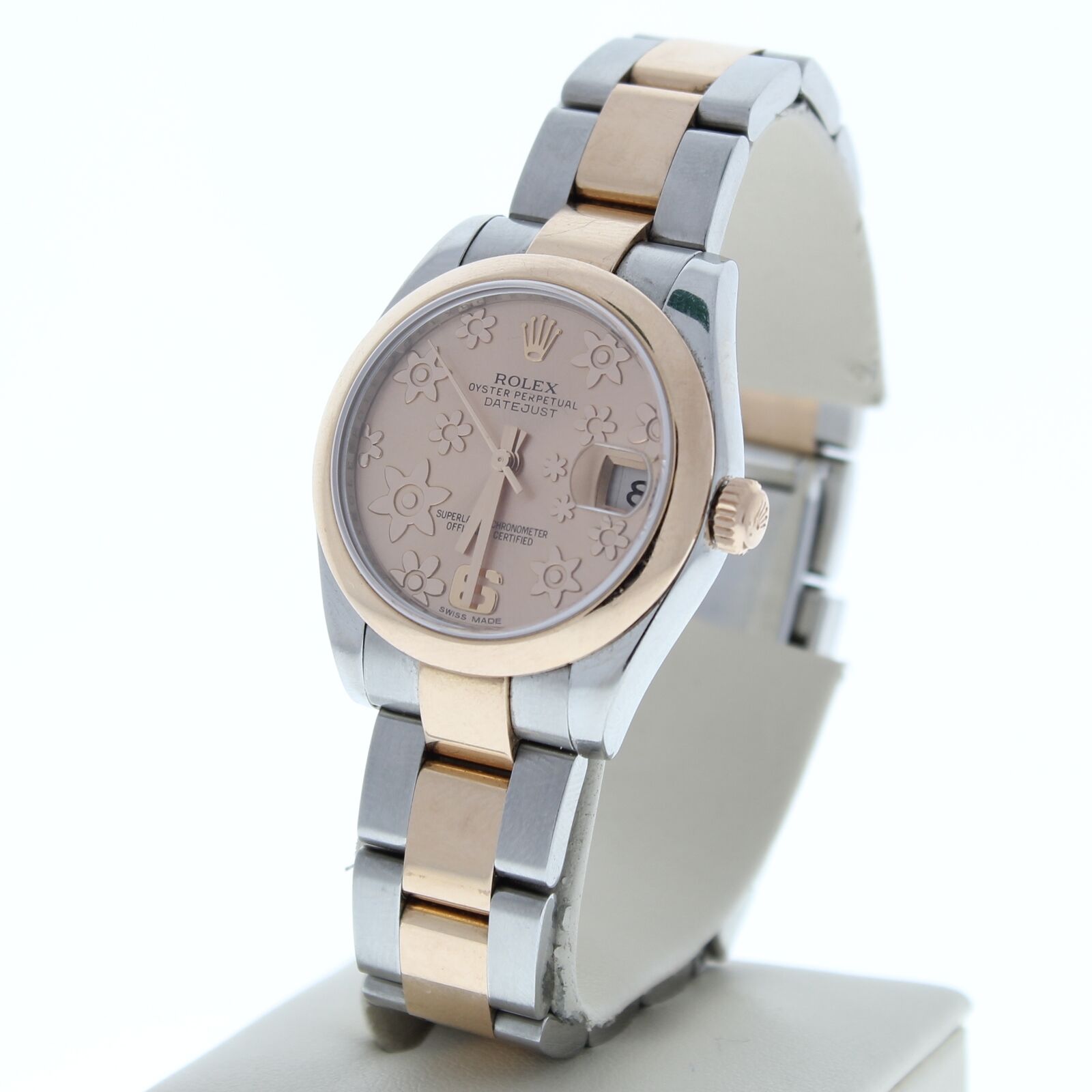 ROLEX 178241 31MM DATEJUST STEEL & 18K ROSE GOLD WATCH PINK FLORAL DIAL