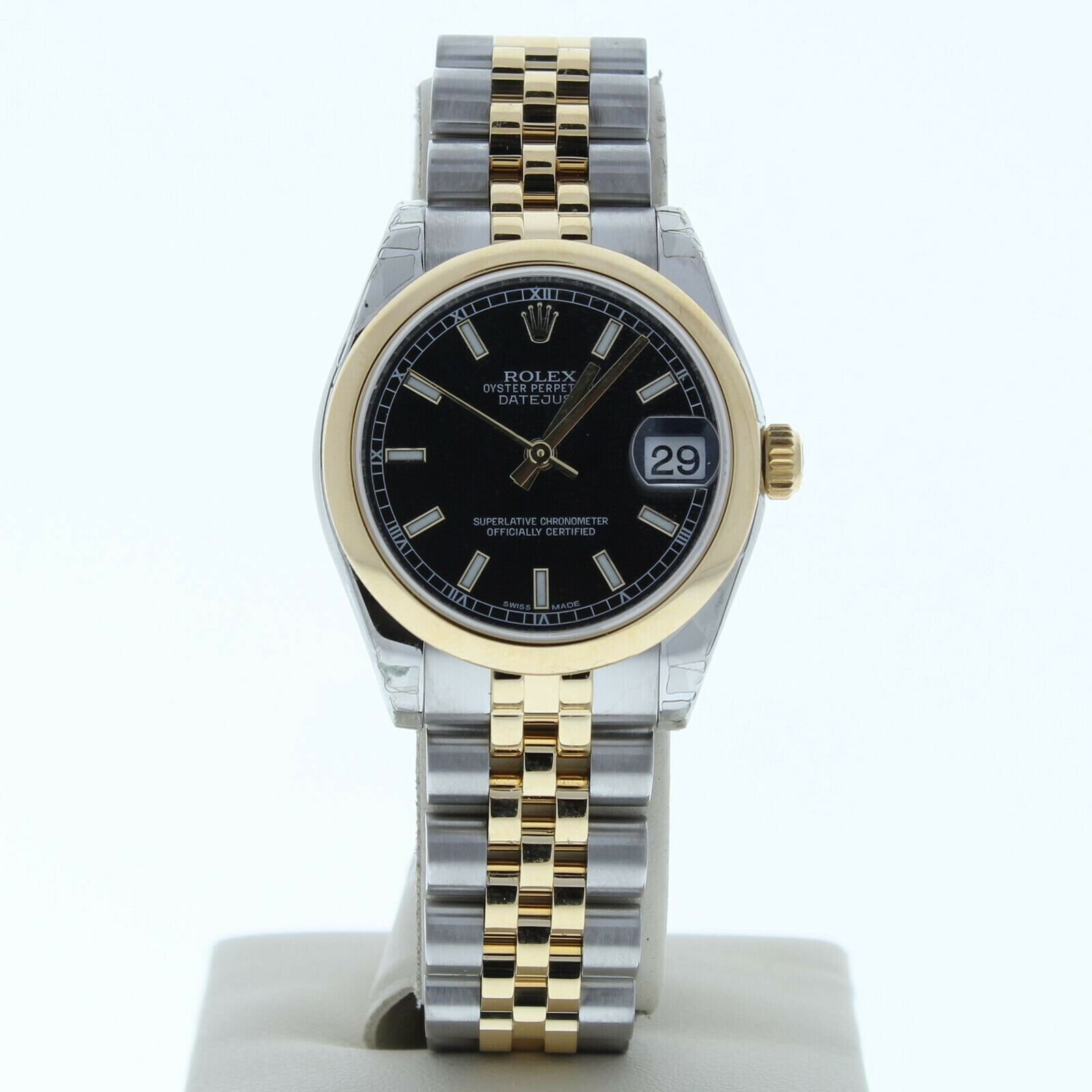 Rolex 178243 31mm Datejust Steel & Gold Watch Black Index Dial Smooth Bezel