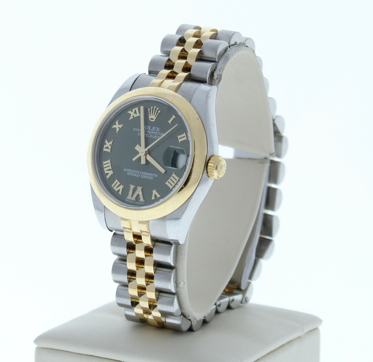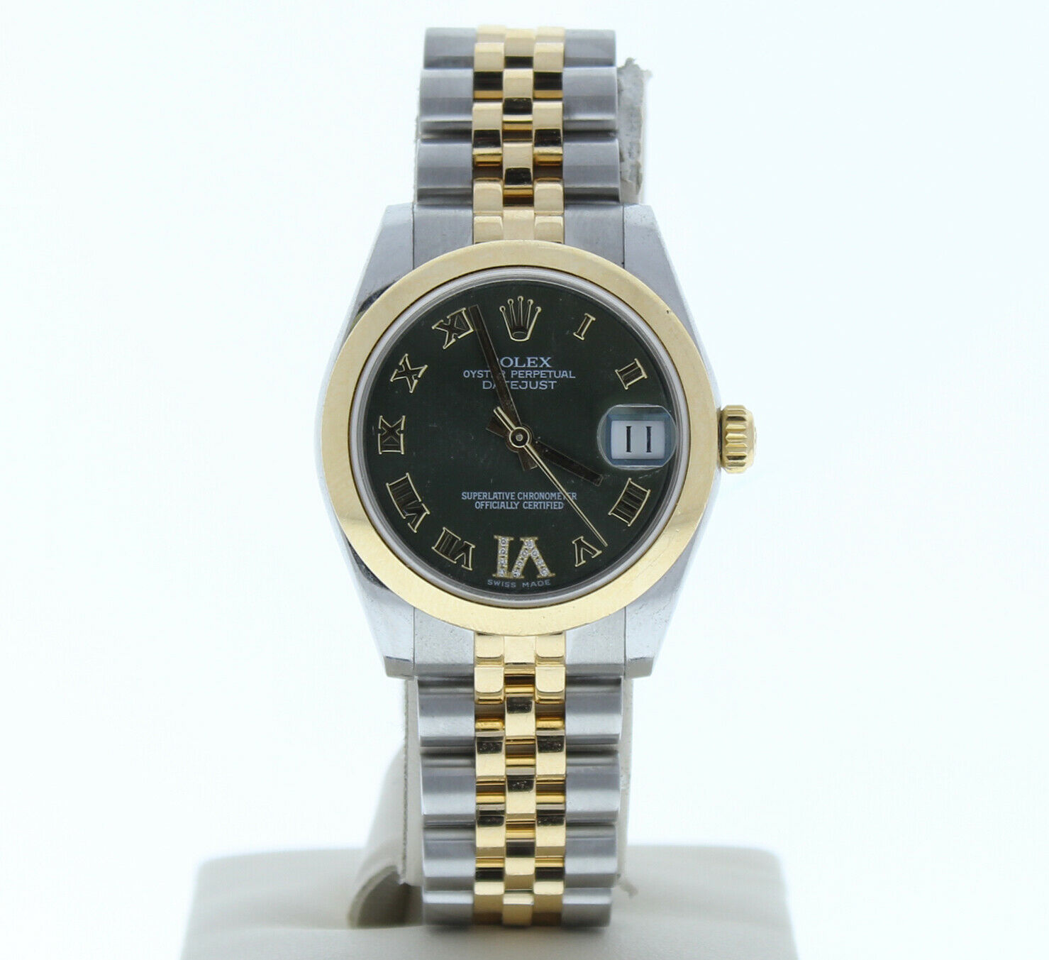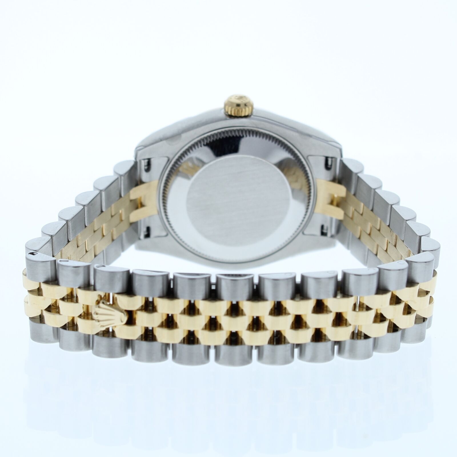This Rolex has been beautifully restored to look brand new. This watch has been tested for accuracy and water pressure. This is a “Scrambled” series 2015 model with a stainless steel and 18k yellow gold jubilee band that can be sized up to a 6 3/4″ wrist size, If you have a larger wrist please let us know and we will try to accommodate you. The watch case measures at 31mm and comes with a deployment buckle.