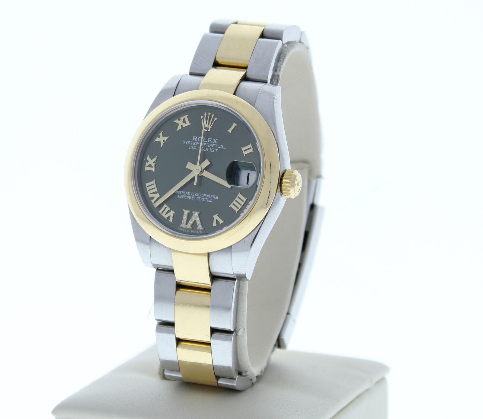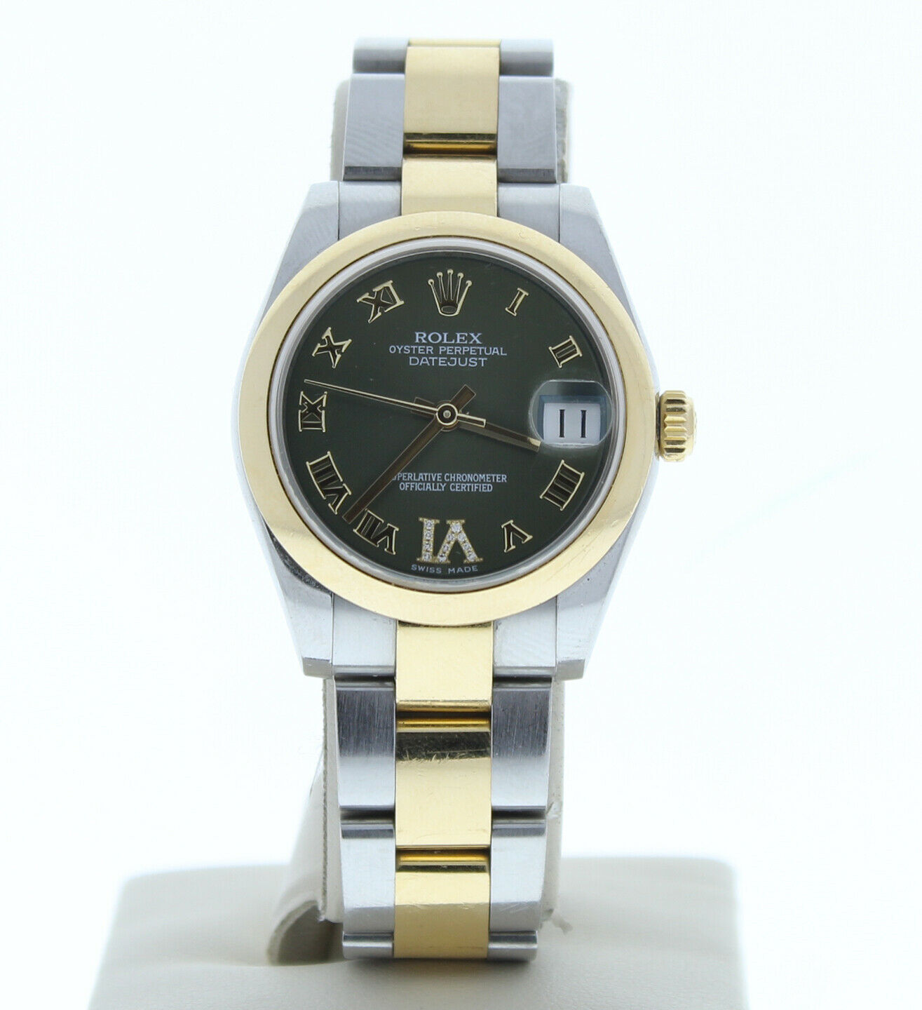 Rolex 178273 Midsize Datejust Steel & 18k Gold Watch Green Roman Diamond Dial