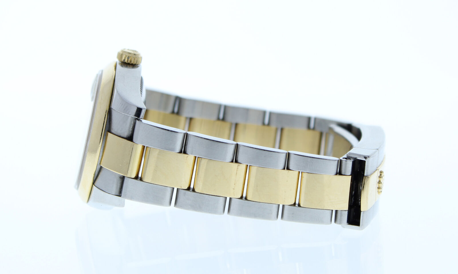 This Rolex has been beautifully restored to look brand new. This watch has been tested for accuracy and water pressure. This watch is currently being manufactured today, it has a newstyle stainless steel & 18k yellow gold oyster band that can be sized up to a 6 3/4″ wrist size, If you have a larger wrist please let us know and we will try to accommodate you. The watch case measures at 31mm and comes with a deployment buckle. If you have any questions at all please feel free to contact us . We reply to all emails within 24 hours during business days.