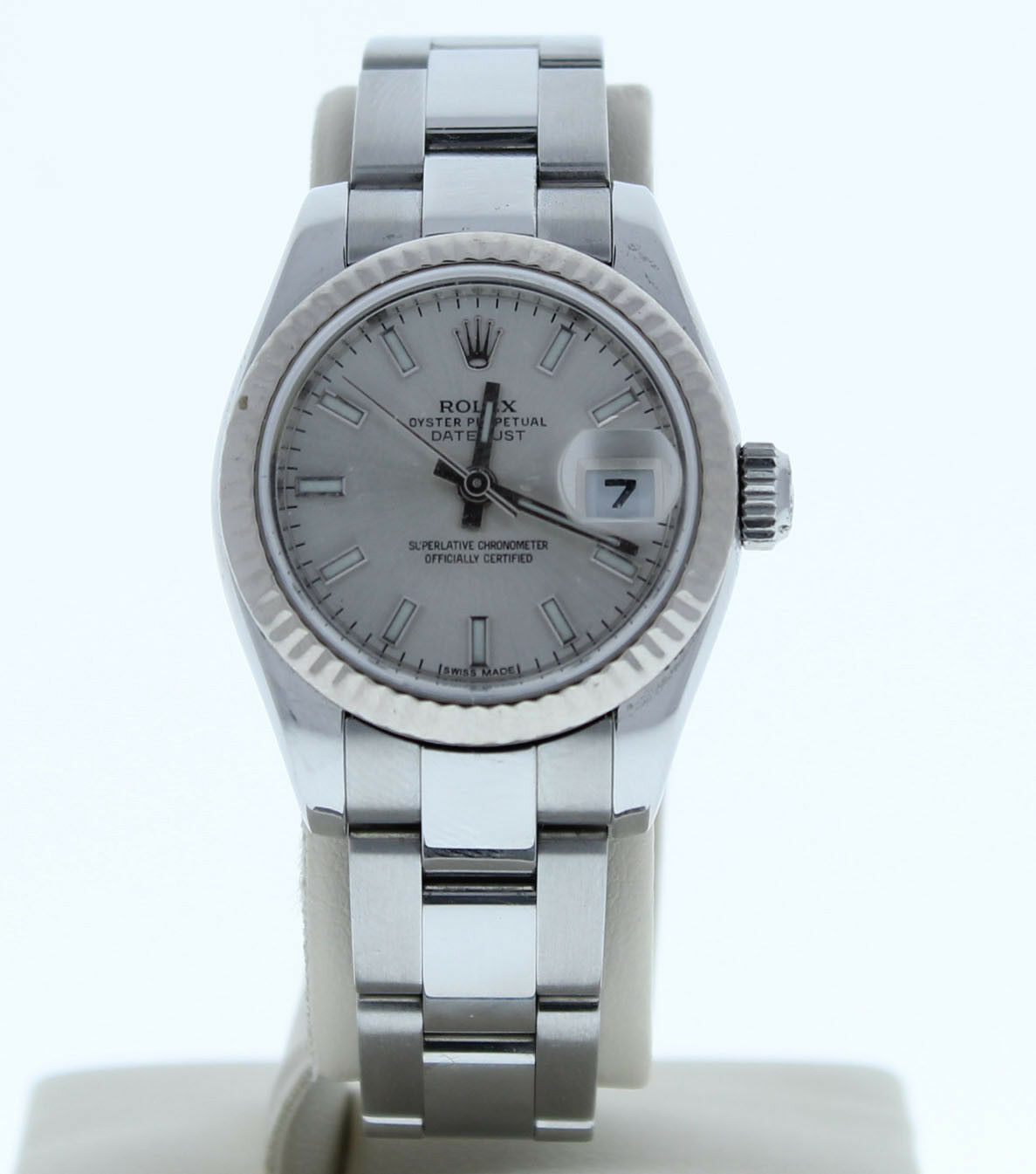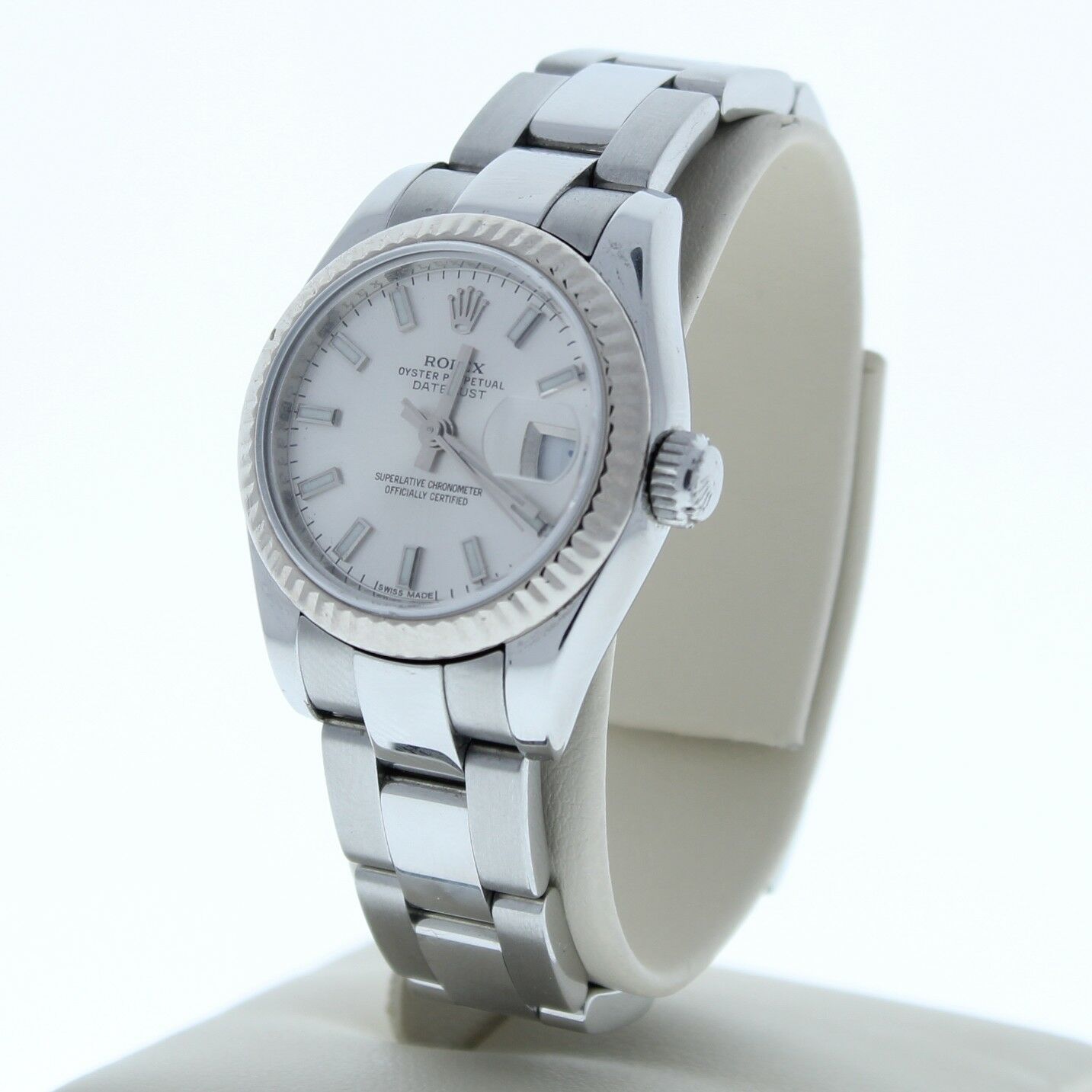 Rolex 179174 Ladys Datejust Watch Oyster Band Silver Index Dial & Fluted Bezel
