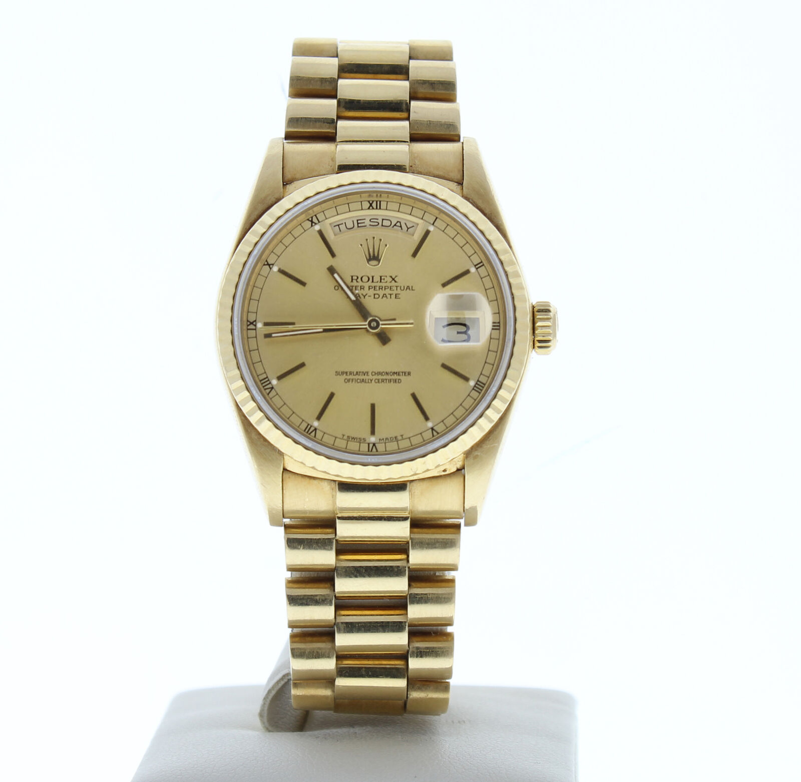 Rolex 18038 DayDate 36mm President 18k Gold Watch Factory Champagne Stick Dial