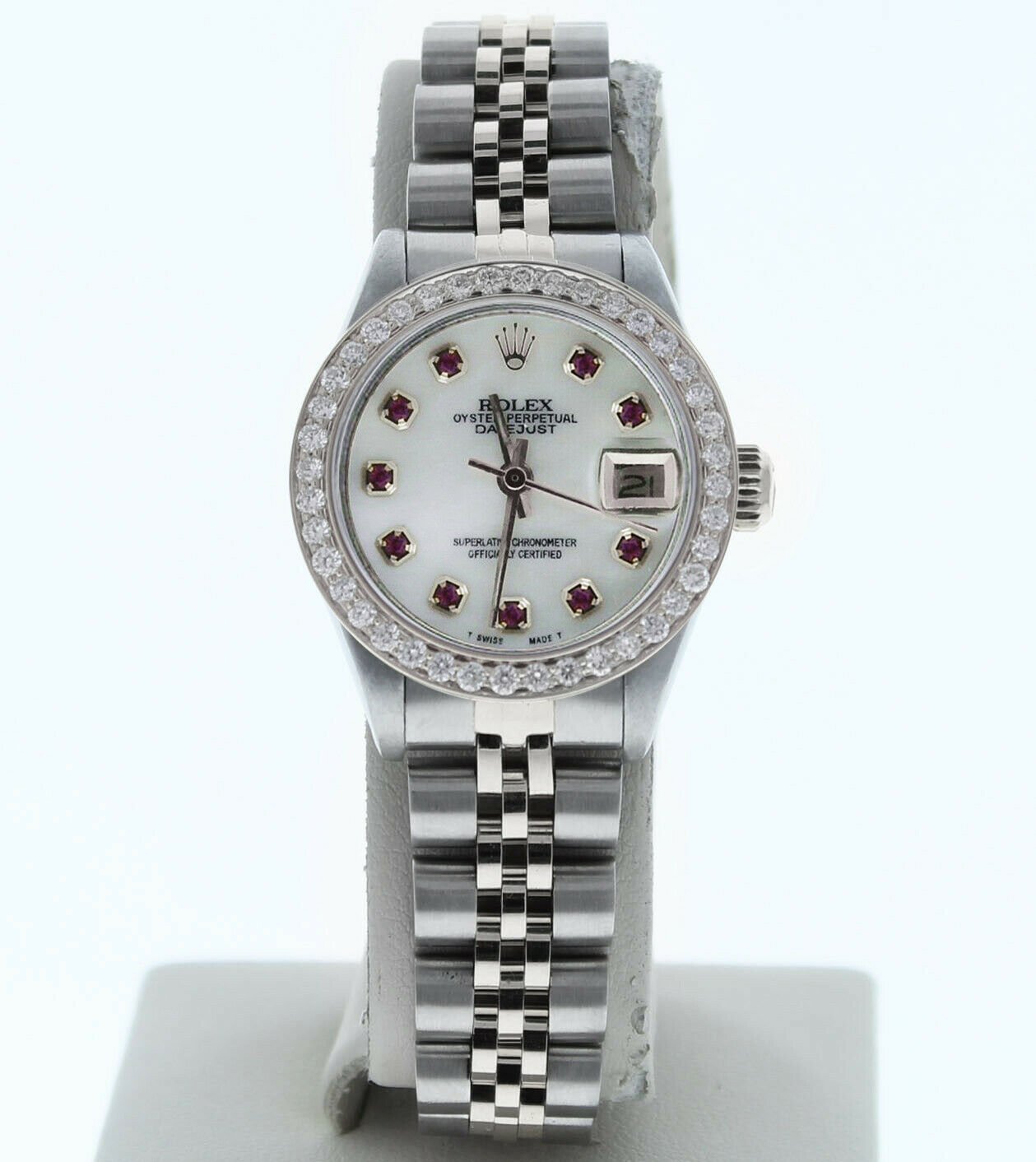 This Rolex has been beautifully restored to look brand new. This watch has been tested for accuracy and water pressure. This is a mid 1990’s era model with a stainless steel jubilee band that can be sized up to a 6 3/4″ wrist size, If you have a larger wrist please let us know and we will try to accommodate you. The watch case measures at 26mm and comes with a deployment buckle.