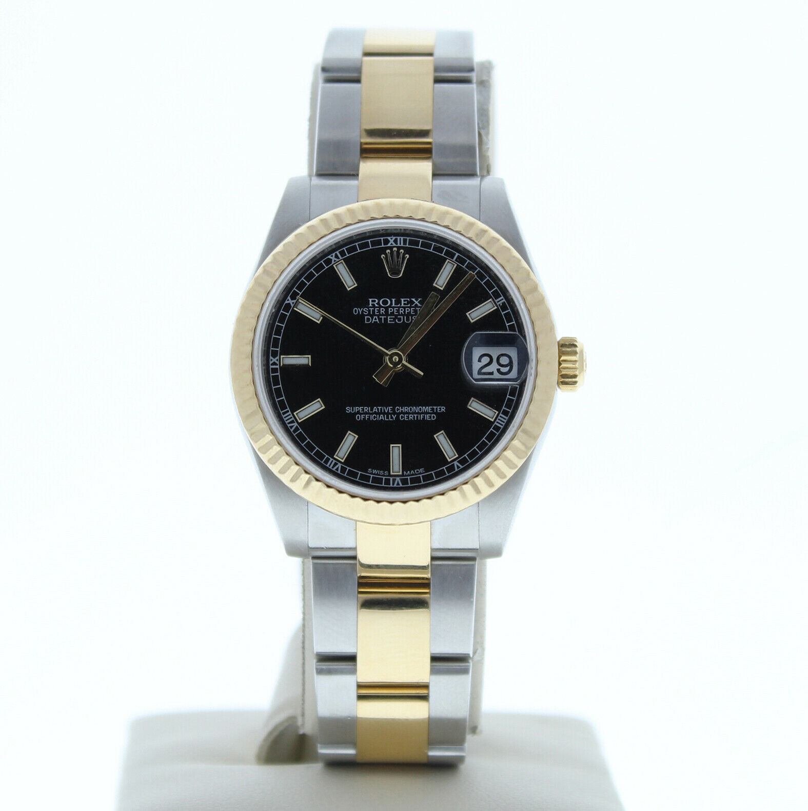 Rolex 31mm Midsize Datejust 178273 Steel & 18k Gold Oyster Band Black Index Dial