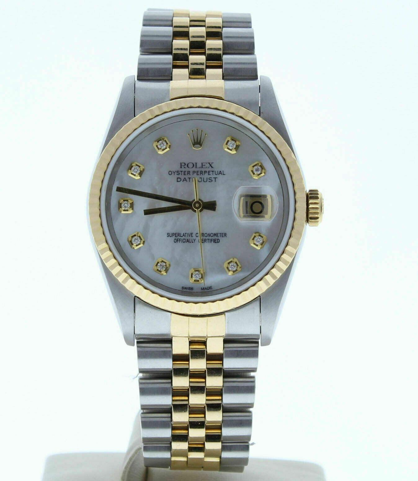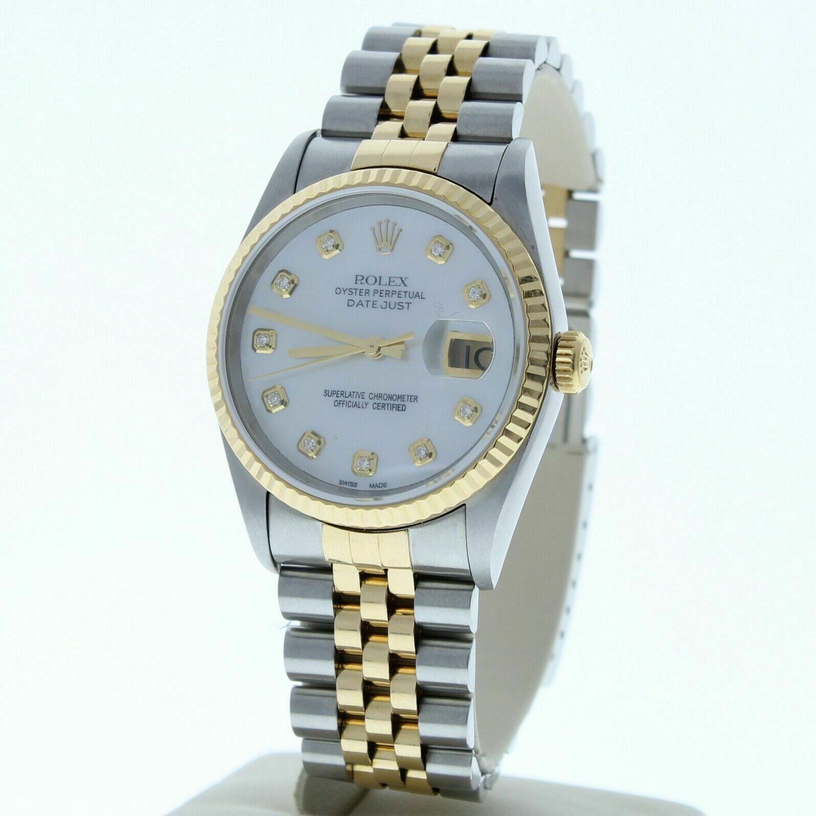 Rolex 36mm Datejust 16233 Custom Mother Of Pearl Diamond Dial & Fluted Bezel