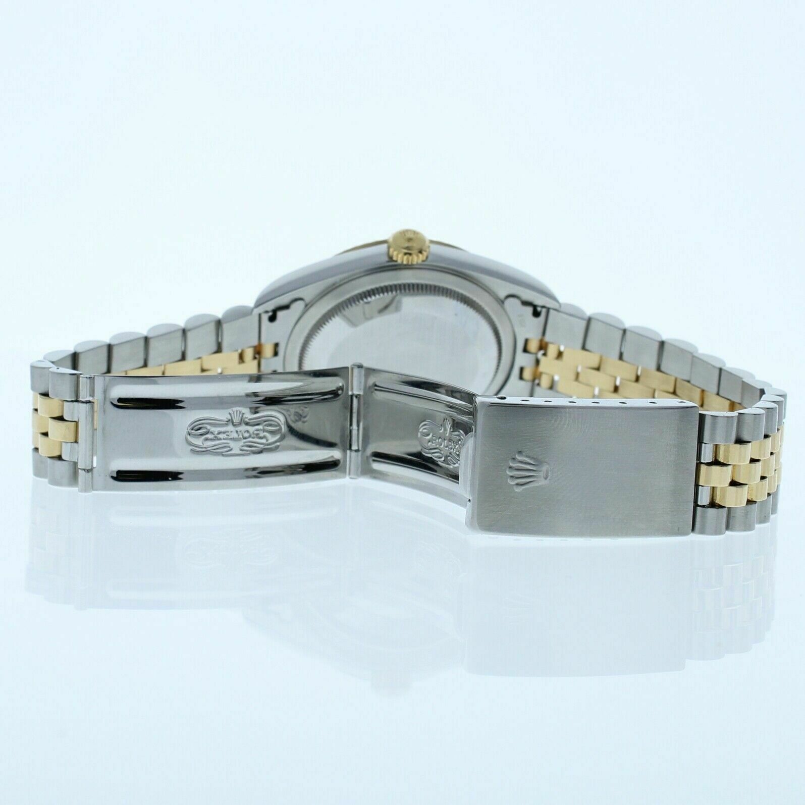 This Rolex has been beautifully restored to look brand new. This watch has been tested for accuracy and water pressure. This is a 90’s era model with a stainless steel and 18k yellow gold jubilee band that can be sized up to a 7 3/4″ wrist size, If you have a larger wrist please let us know and we will try to accommodate you. The watch case measures at 36mm and comes with a deployment buckle. If you have any questions at all please feel free to contact us . We reply to all emails within 24 hours during business days.
