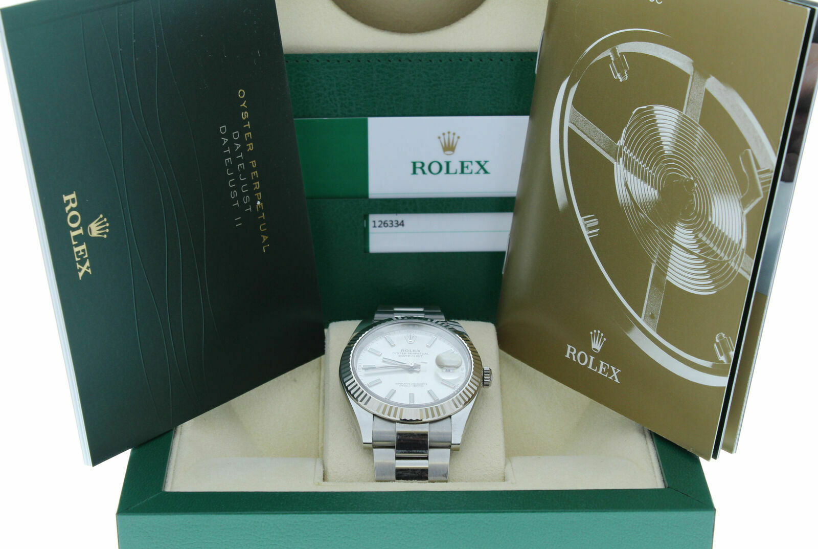 Rolex 41MM DATEJUST 126334 OYSTER BAND SILVER INDEX DIAL & FLUTED BEZEL W CARD