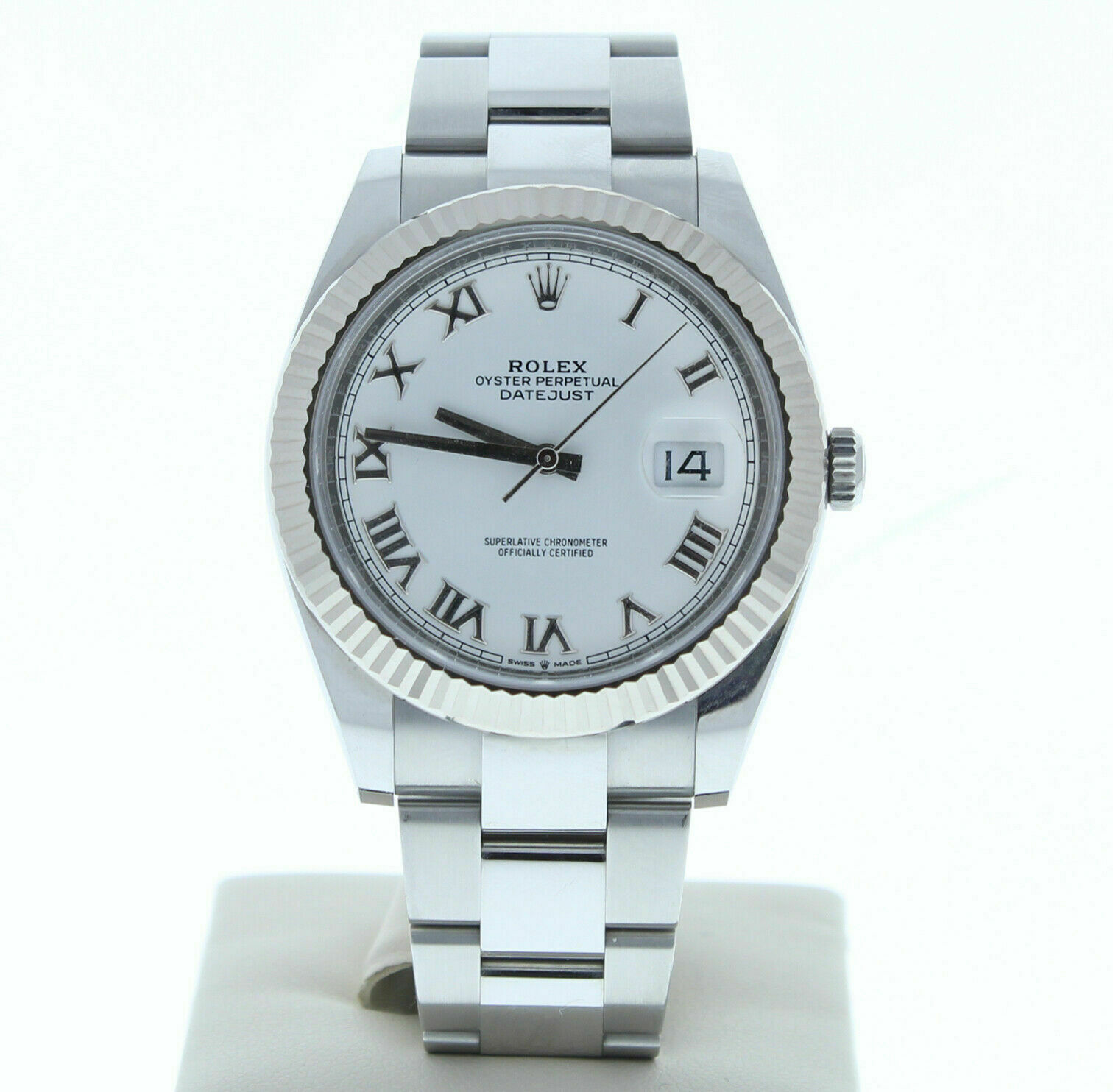 Rolex 41mm Datejust 126334 Oyster Band White Roman Dial & 18k White Gold Bezel