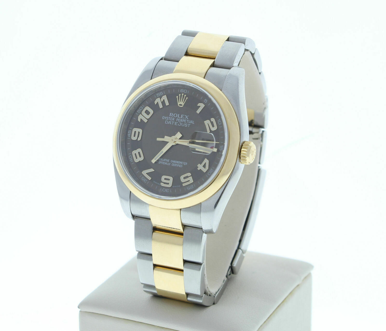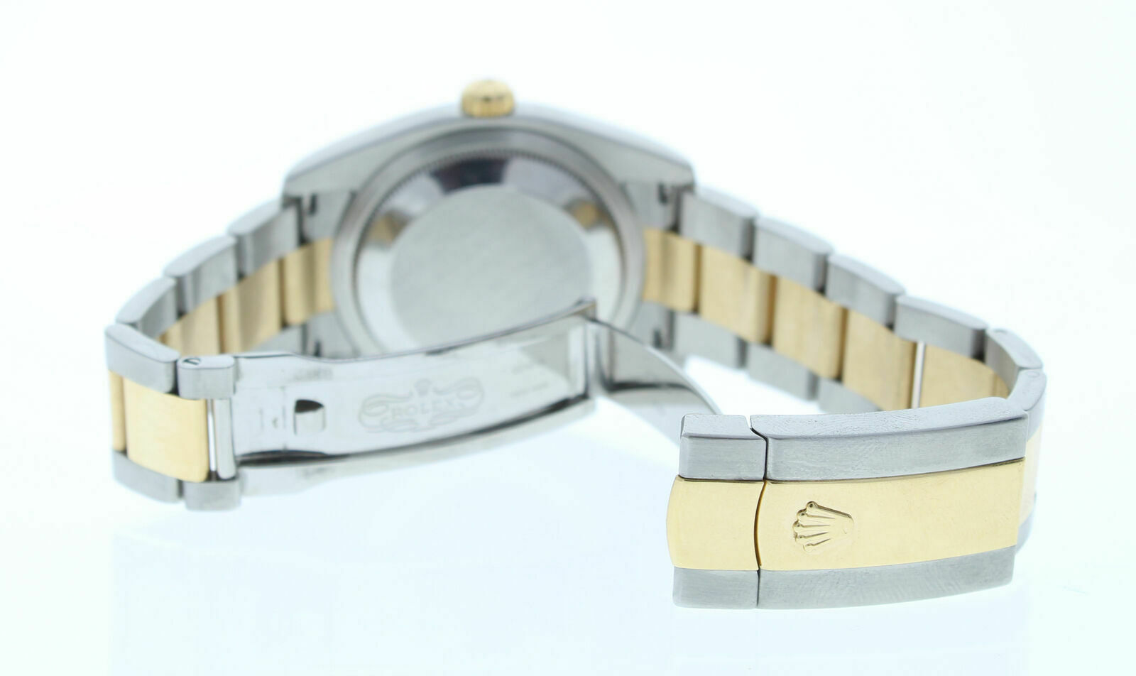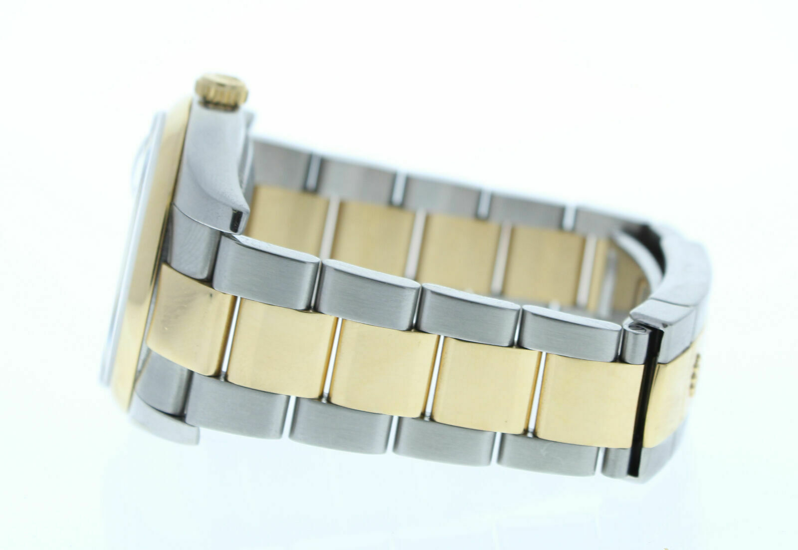 This Rolex has been beautifully restored to look brand new. This watch has been tested for accuracy and water pressure. This watch is currently being manufactured today, it has a newstyle stainless steel & 18k yellow gold oyster band that can be sized up to a 7 3/4″ wrist size, If you have a larger wrist please let us know and we will try to accommodate you. The watch case measures at 36mm and comes with a deployment buckle.