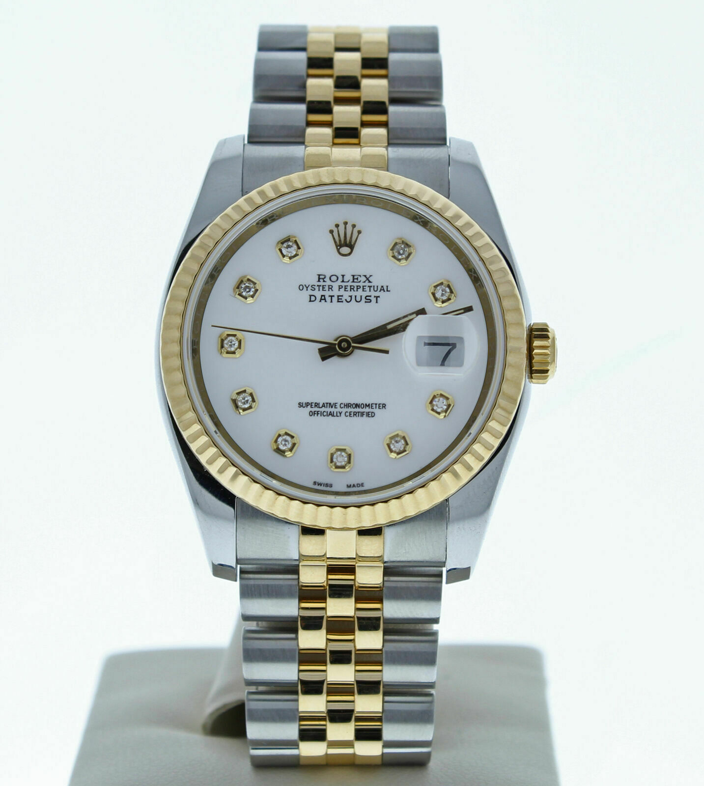 Rolex Datejust 116233 Jubilee Band Custom White Diamond Dial & Fluted Bezel