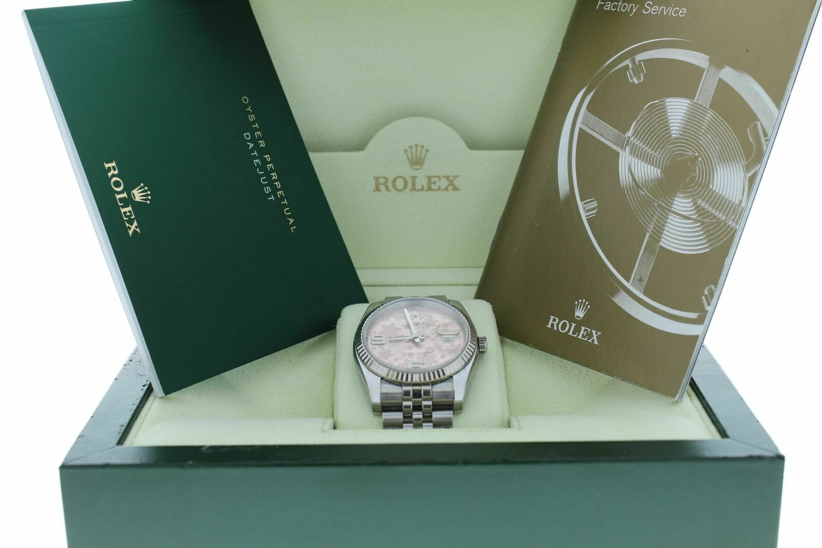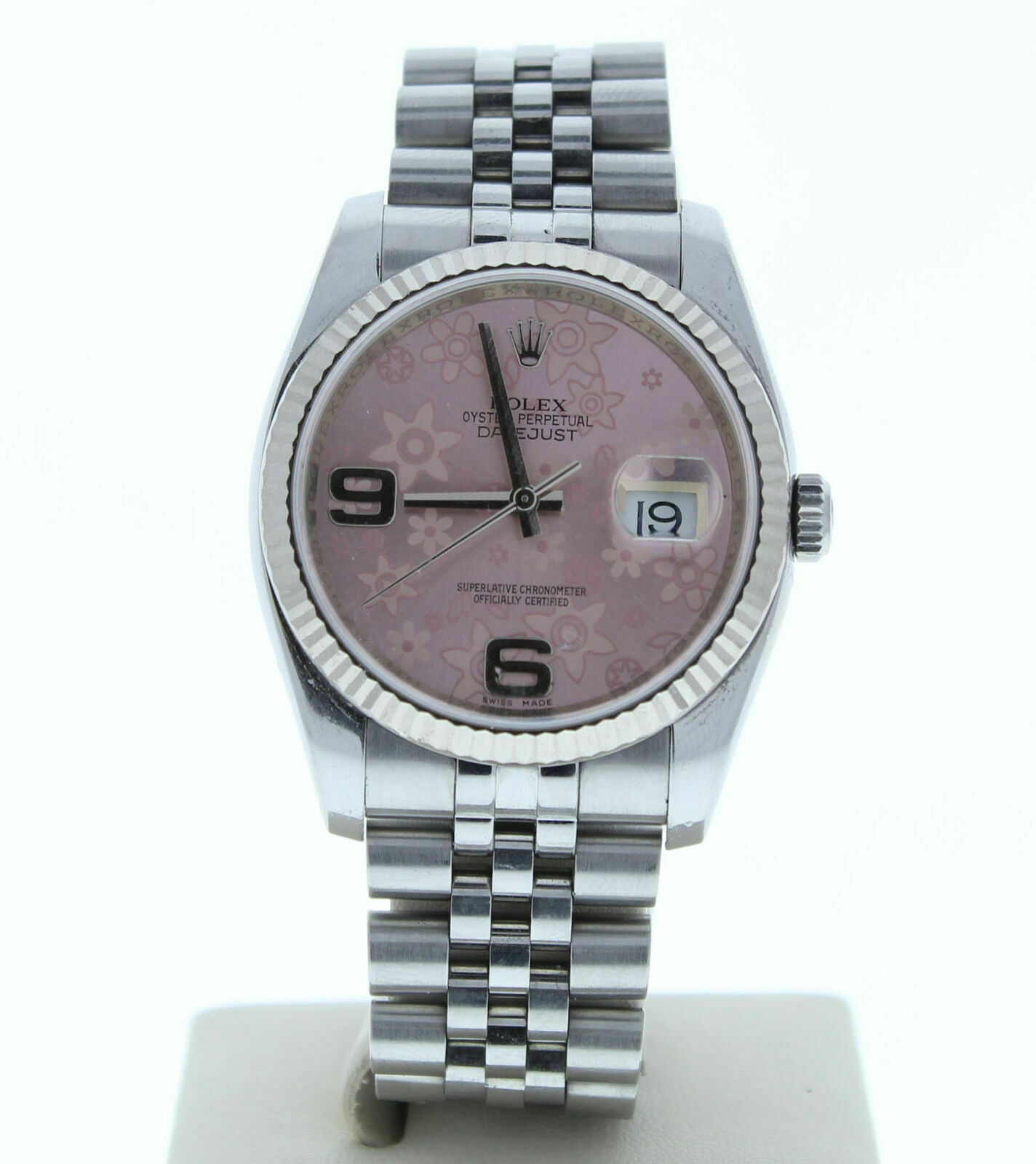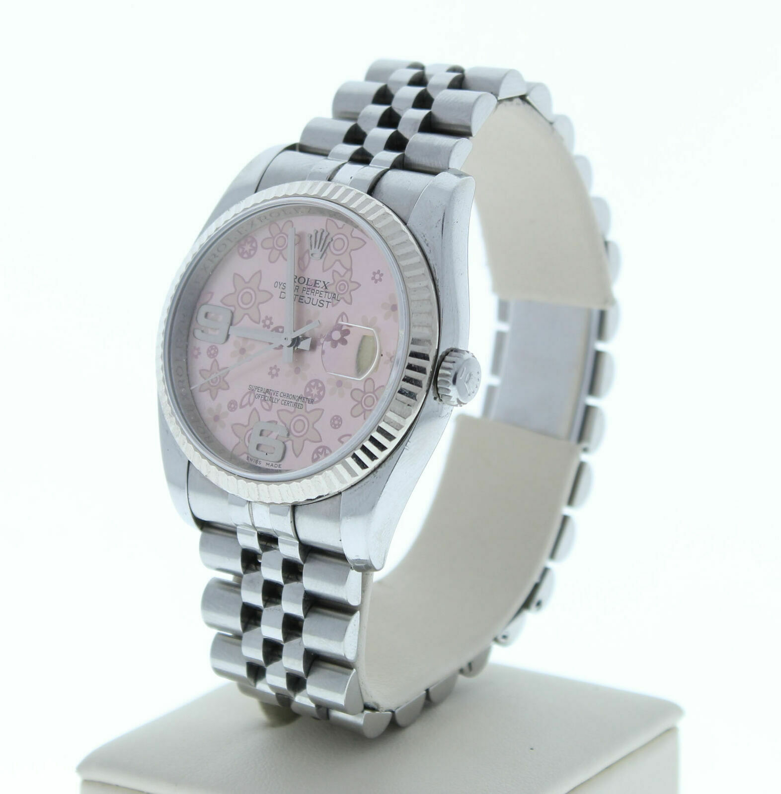 Rolex Datejust 116234 Jubilee Band Pink Floral Dial & White Gold Fluted Bezel