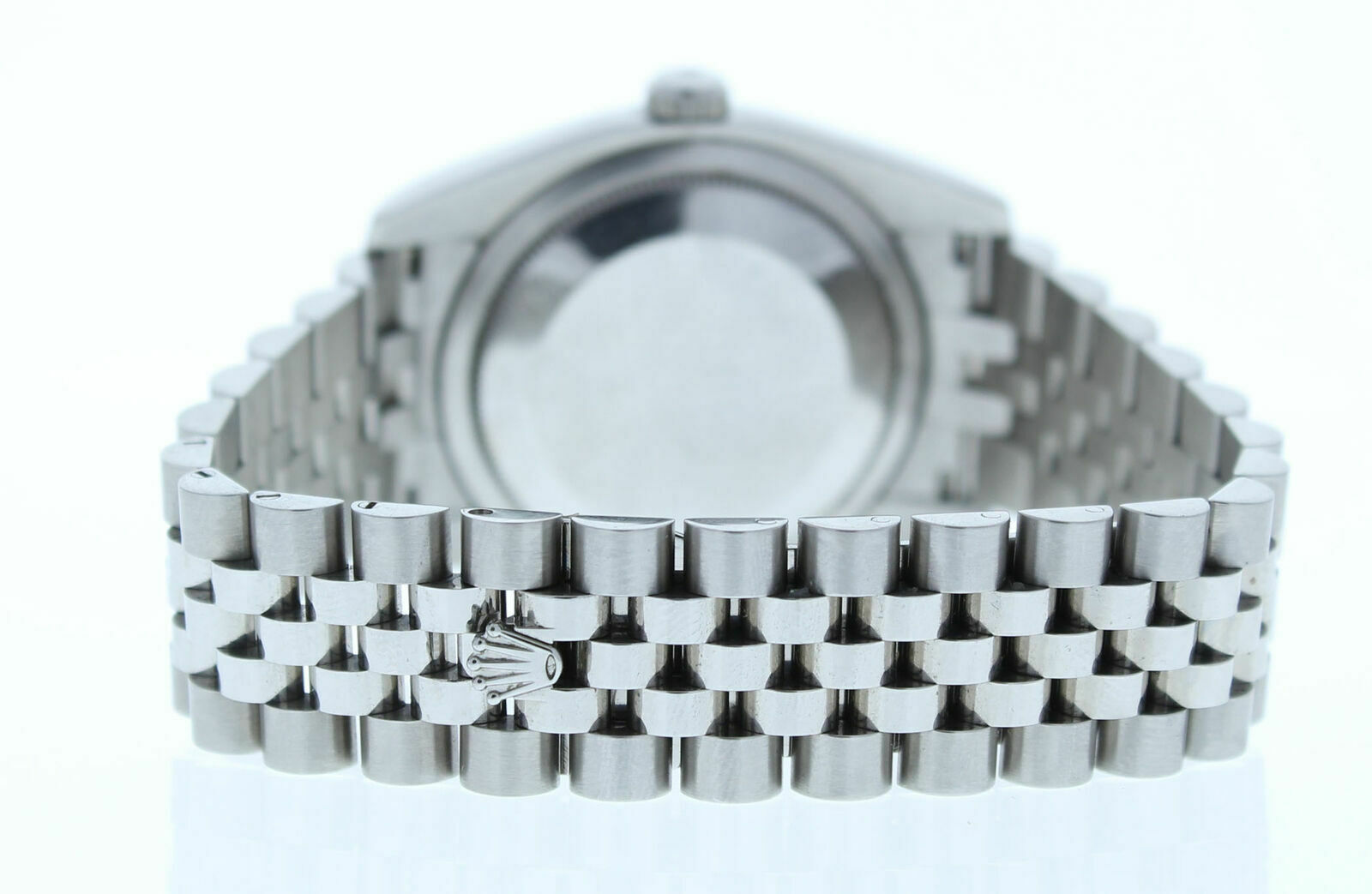 This Rolex Datejust Mens Watch Is In Mint Condition and is currently being manufactured today, it has a newstyle stainless steel jubilee band that can be sized up to a 7 3/4″ wrist size, If you have a larger wrist please let us know and we will try to accommodate you. The case measures at 36mm and comes with a deployment buckle.
